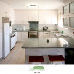 Kitchen: Fully equipped with modern gas stove, dishwasher, microwave oven, fridge, freezer, cutlery & crockery, welcome pack with coffee, tea, sugar, rusks, jam, milk, bottled water & margarine as well as ironing board with steam iron.